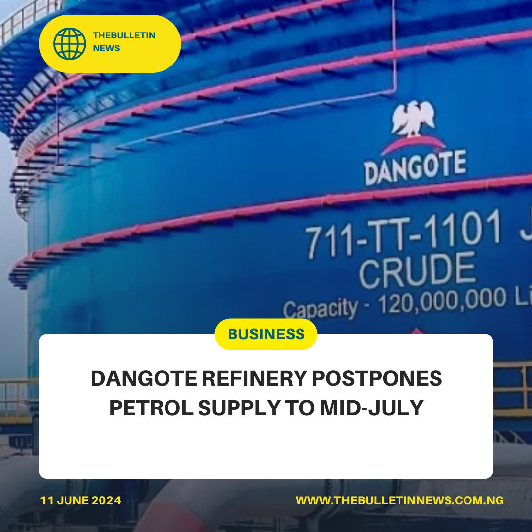 The highly anticipated Dangote Petroleum Refinery and Petrochemicals in Lagos State has announced a delay in the supply of Premium Motor Spirit (PMS), commonly known as petrol. The supply date, initially set for June, has been pushed back to the second to third week of July.